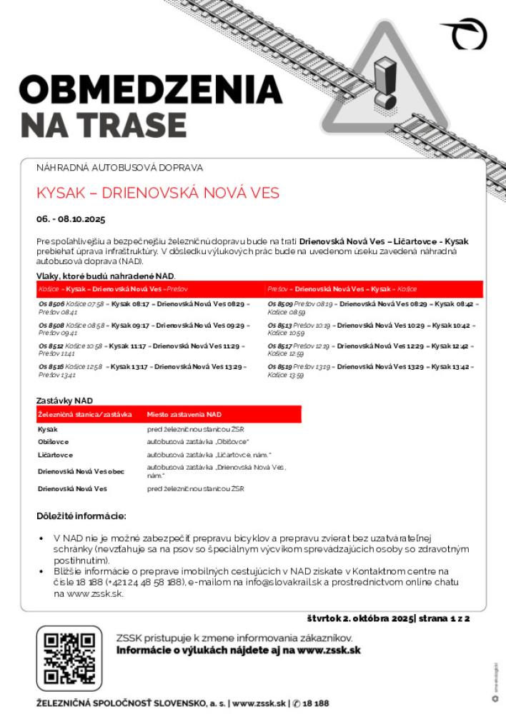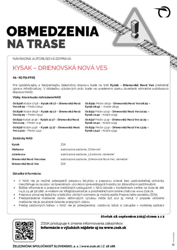 Výluka Kysak - Drienovská Nová Ves